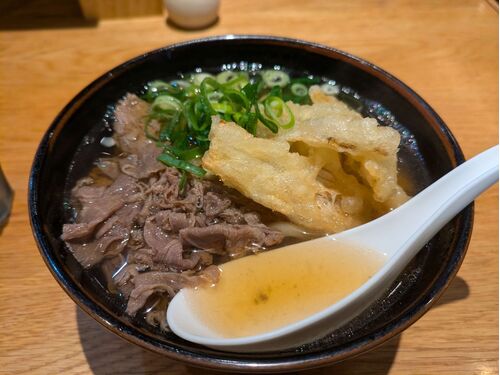 うどん平(たいら)は博多うどんの人気店で、タモリが帰省時に立ち寄る店として知られています。平打ち麺は柔らかい中にもコシがあり、麺と出汁の両方を楽しめるうどんでした。