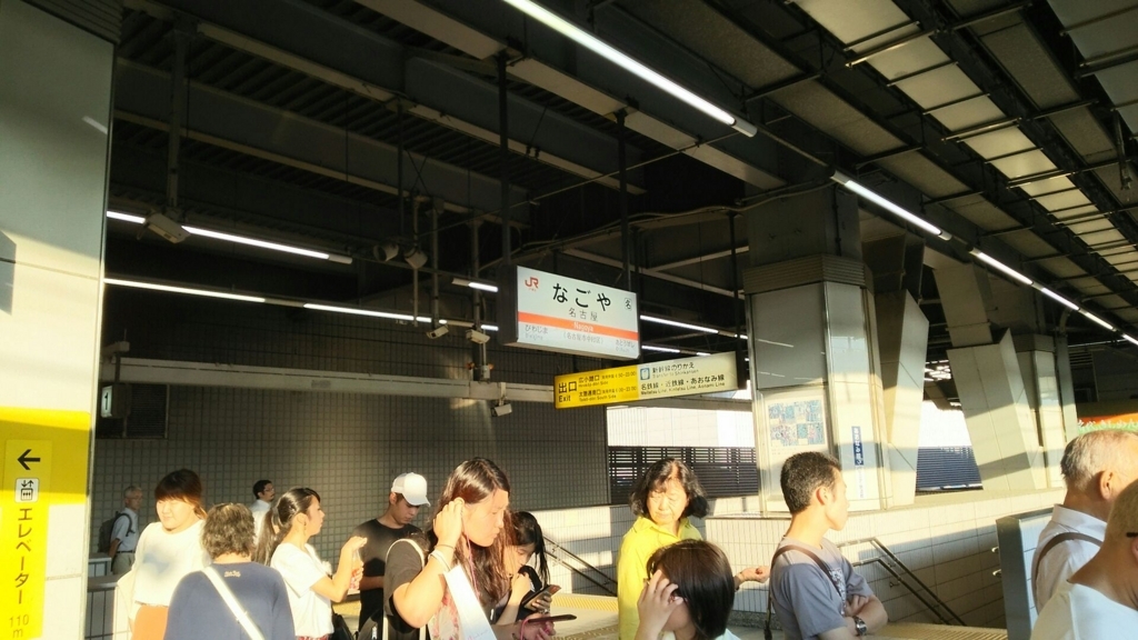新快速は熱田の隣の金山にも停まりますが、あえて名古屋まで戻ってきたのは「3・4番線ホーム上の住よし」できしめんを食べるためでした。青春18きっぷで東京に戻るためには名古屋駅18時9分発が最終になるのですが、どうやらそれより1本早い電車に乗れそうです。それにしてもホームに降り注ぐ西日が強烈でした。